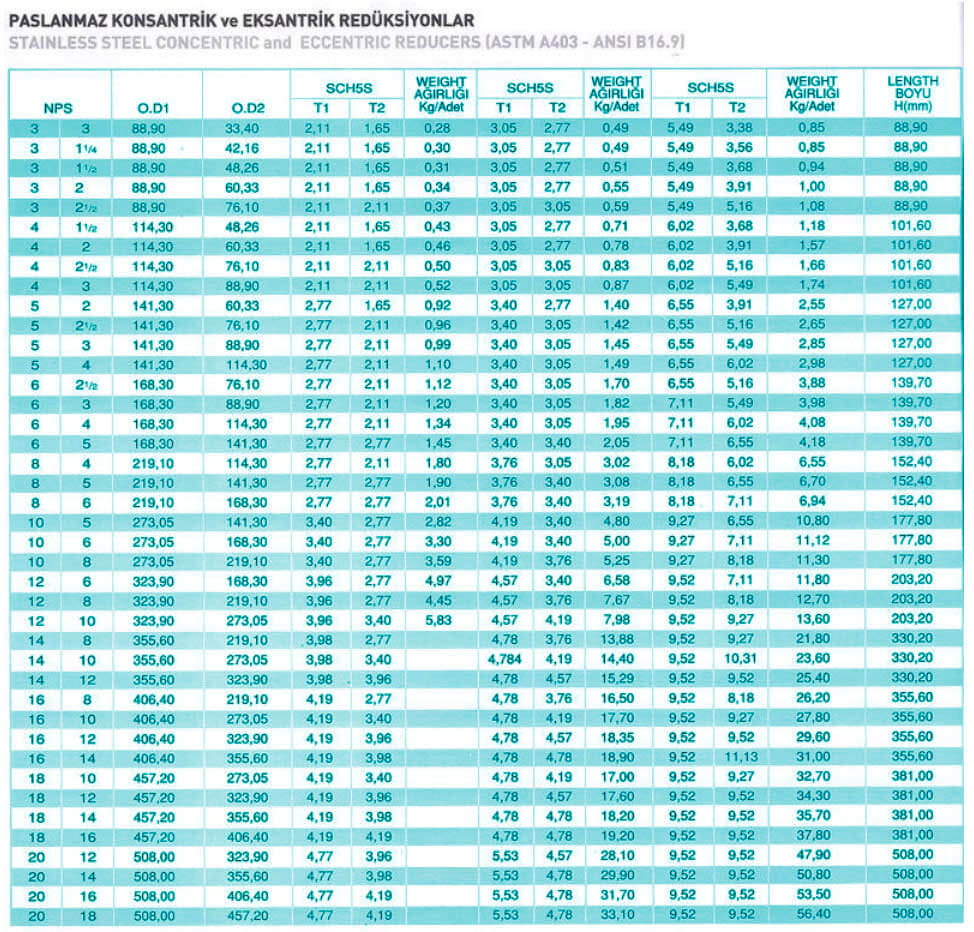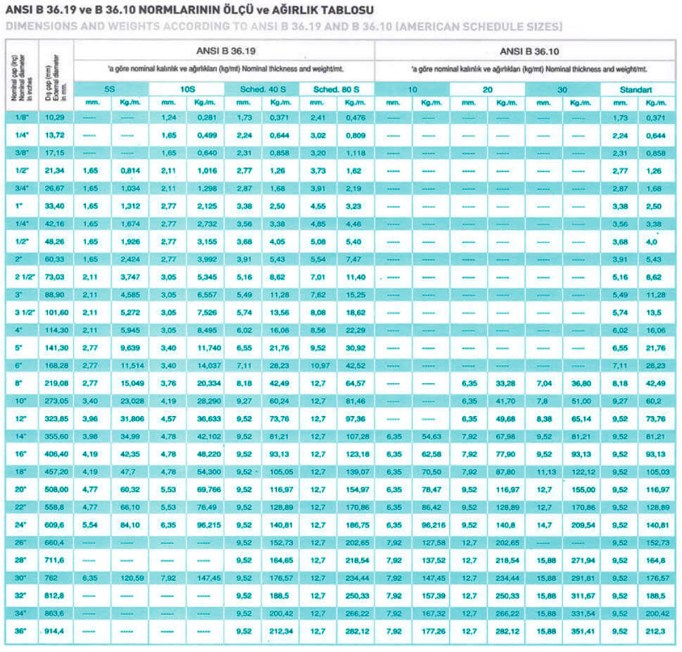 ANSI B36. 19 VE B 36.10 NORMLARINDA